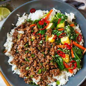 PORK:  Korean Pork Bowl with Mixed Vegetables  over Jasmine Rice