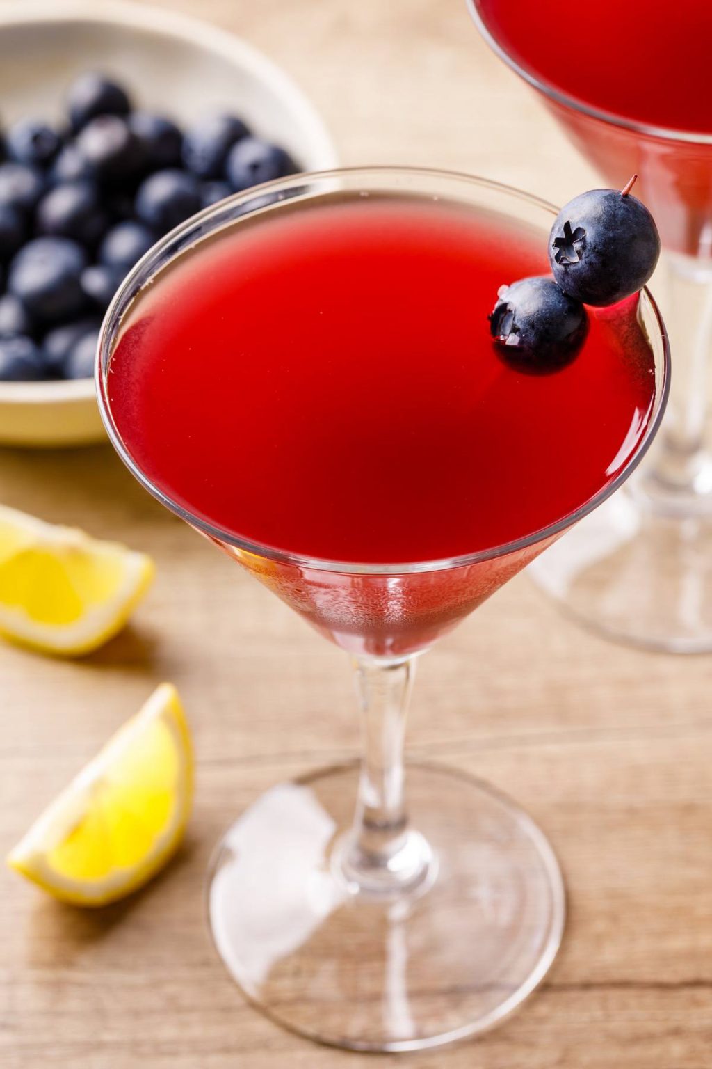 DRINKS: Blueberry Martini: Vodka, Blueberry Liquor, Simple Syrup & Lemon Juice – Serving Size 2