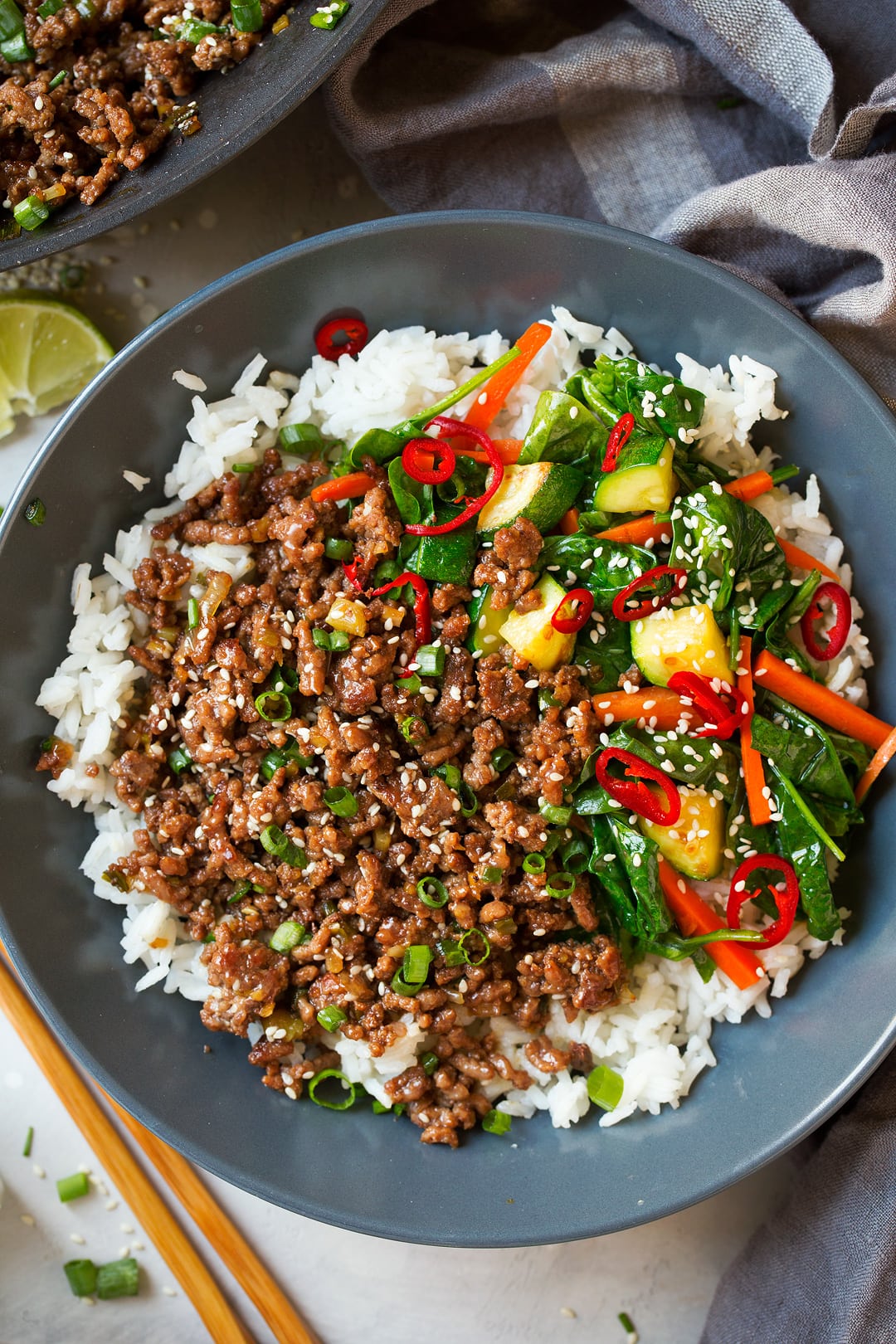 PORK:  Korean Pork Bowl with Mixed Vegetables over Jasmine Rice